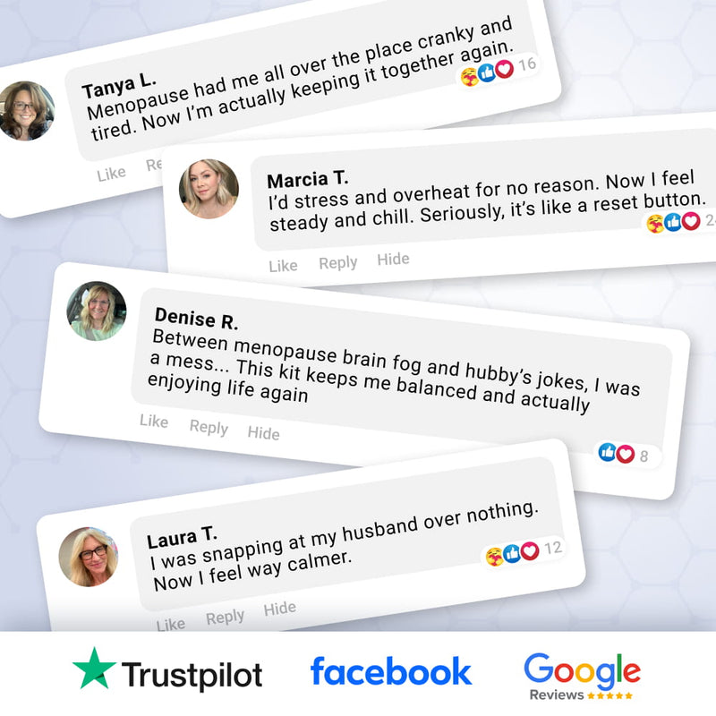 “The first relief came in a couple of weeks when I noticed fewer hot flashes through the night and less brain fog that came with perimenopause. 3 months in and I couldn’t do without this complex!”